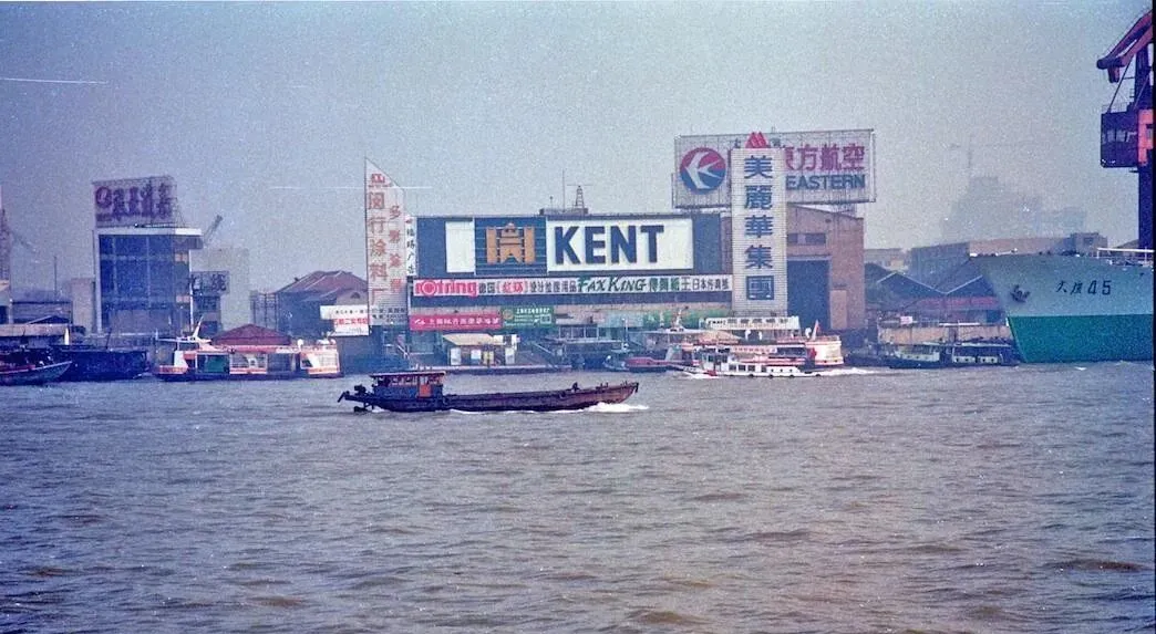 这面墙上的大字母广告牌真醒目,旁边挂着“美丽华集团”的牌子,码头边停了渡船和小拖轮,浪花拍在混凝土边,叔叔说这些牌子一夜之间冒出来,谁家能上大招牌,面子可大着呢,现在的屏幕一换画面更快,却少了那么一点点笨拙的热闹。