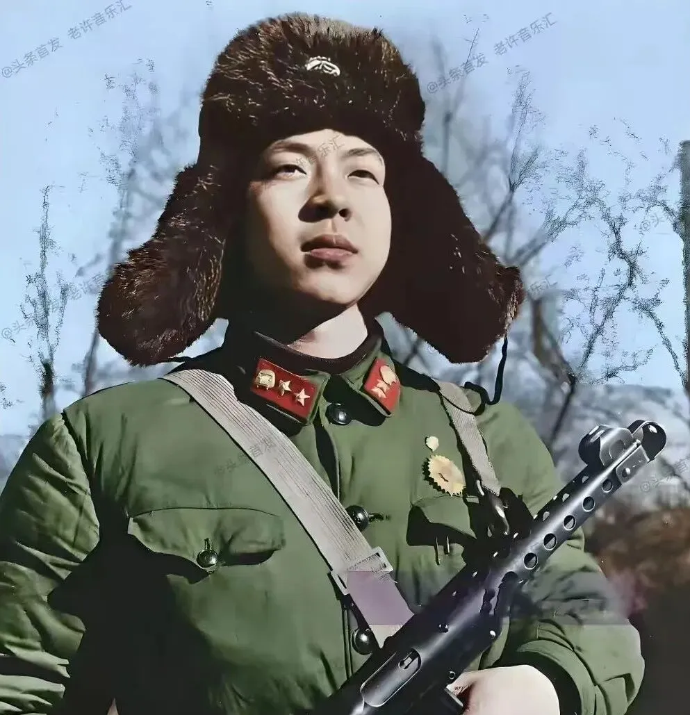 这个英气十足的半身像,好一顶大耳护的皮帽,棉军装扣得齐齐整整,胸前背带斜挎,手里握着冲锋枪,金属孔洞一排排,阳光从树梢洒下来,脸庞微微仰起,没摆姿势的摆姿势,就是那股真诚与倔劲儿,摄影师显然等过一阵风,把皮帽边缘吹起那刻卡了下来,年轻的热量顺着底片往外冒。