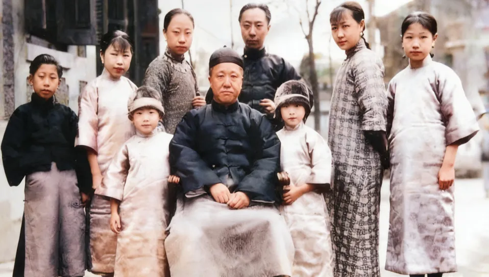 这张端端正正的叫老式家族合影,长辈坐中间,面前围着一圈孩子,衣摆规矩,布料泛着柔光,立领扣到最上头,帽子压在发髻上,站在后面的人肩背挺直,镜头像老师点名似的一个个收住表情,每个人的眼神都落在同一处,我妈看见这种老照片总说你看人家站得多齐,别扭身子别眨眼,照相是件大事,拍完还得把底片小心包好,那时候的人少拍也珍惜,现在手机一按就一连串,选来选去也不见得更有味道,外祖父当年常说留神衣角别起皱,留神站位别挡脸,照相本事不在笑得多灿,在一家人能不能靠得更近一点。