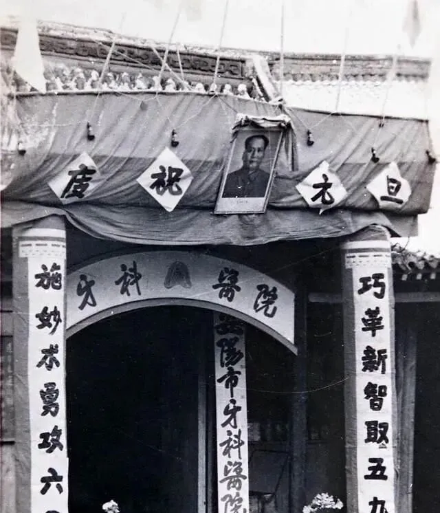 图里拱门一抹白,写着牙科医院的字样,门楣上挂着红布条,左右贴满喜报,开张那阵子热闹得很,妈妈说拔牙要排半天队,医生一抬手,孩子眼泪在眼眶里打转,等出来叼着棉球就能吃甜粥,器械亮得扎眼,现在诊室明亮又齐整,那时屋里一盏顶灯就敢接活。