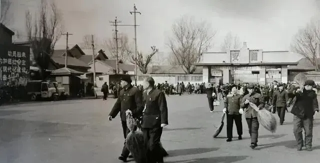 照片里这口门是豫北棉纺织厂的出入口,门柱子上焊着五角星的花样,自行车一辆接一辆往里钻,车把上搭着卷布,车铃一晃清清脆脆的,奶奶说上夜班回来头发上都是棉絮,抖一抖像下了小雪,现在车间封闭又安静,那会儿梭子跑得快,喊话都得扯着嗓子。