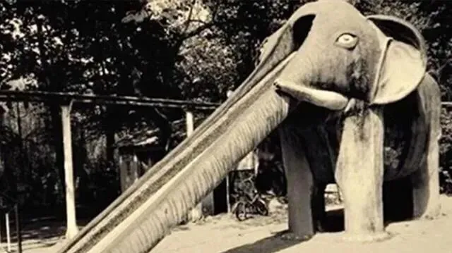 这个三轮车拖着一车南瓜,刀子一扎瓜瓤就露出金黄的肉,孩子在旁边咽口水,摊主笑着说先尝一口,另一张是人民公园的大象滑梯,鼻子长长一直落到地面,早上露水没干就有人在上头爬,屁股上印一排泥点,回家被妈念叨两句也不改下次还玩。