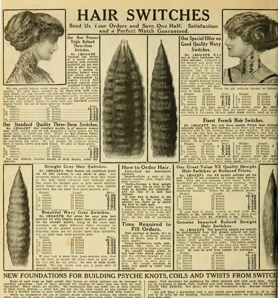 1912年Sears, Roebuck & Co. 商品目錄內展示的女性用假髮片