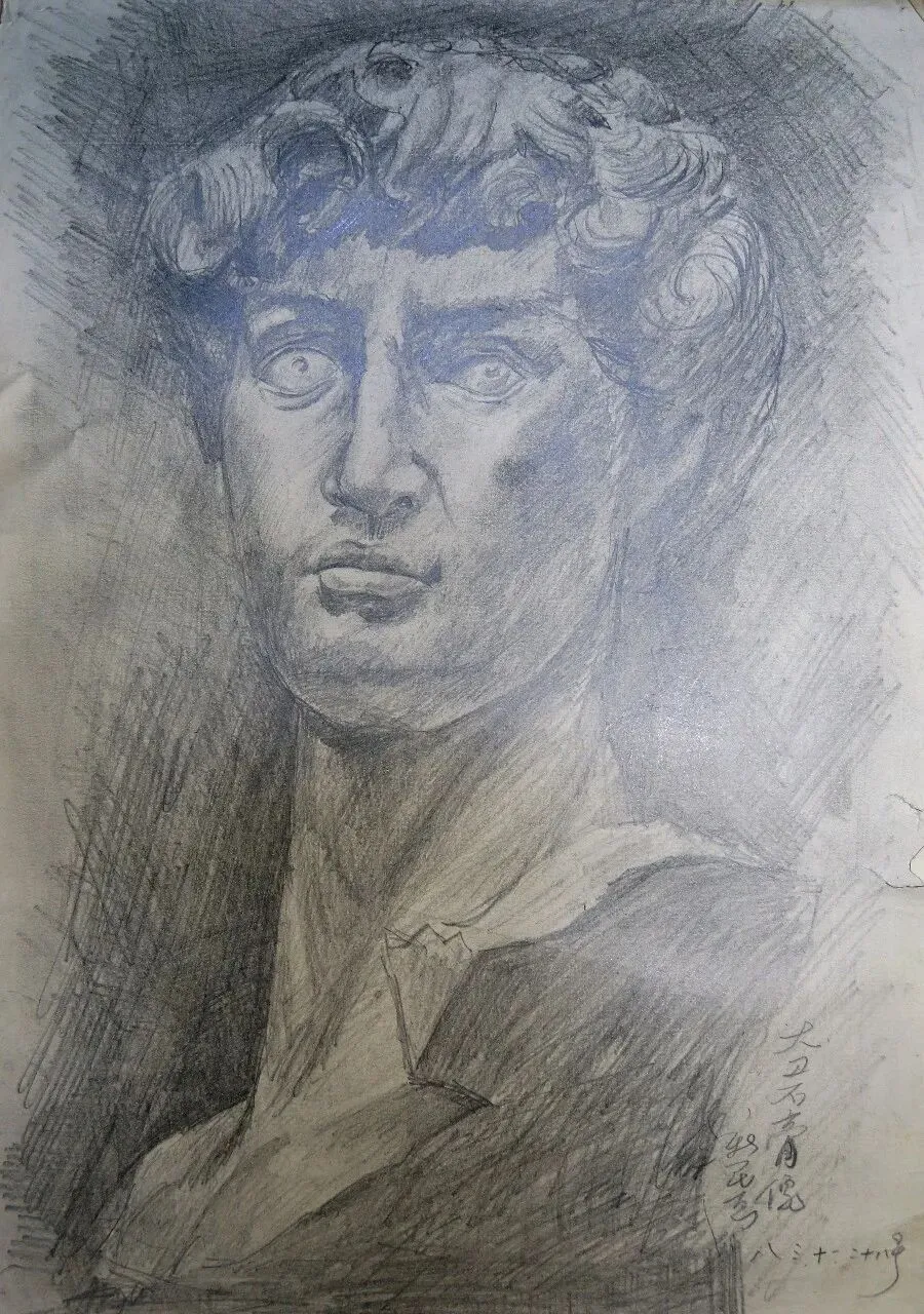 图为:作者1983年11月28日在连队画的大卫石膏素描。