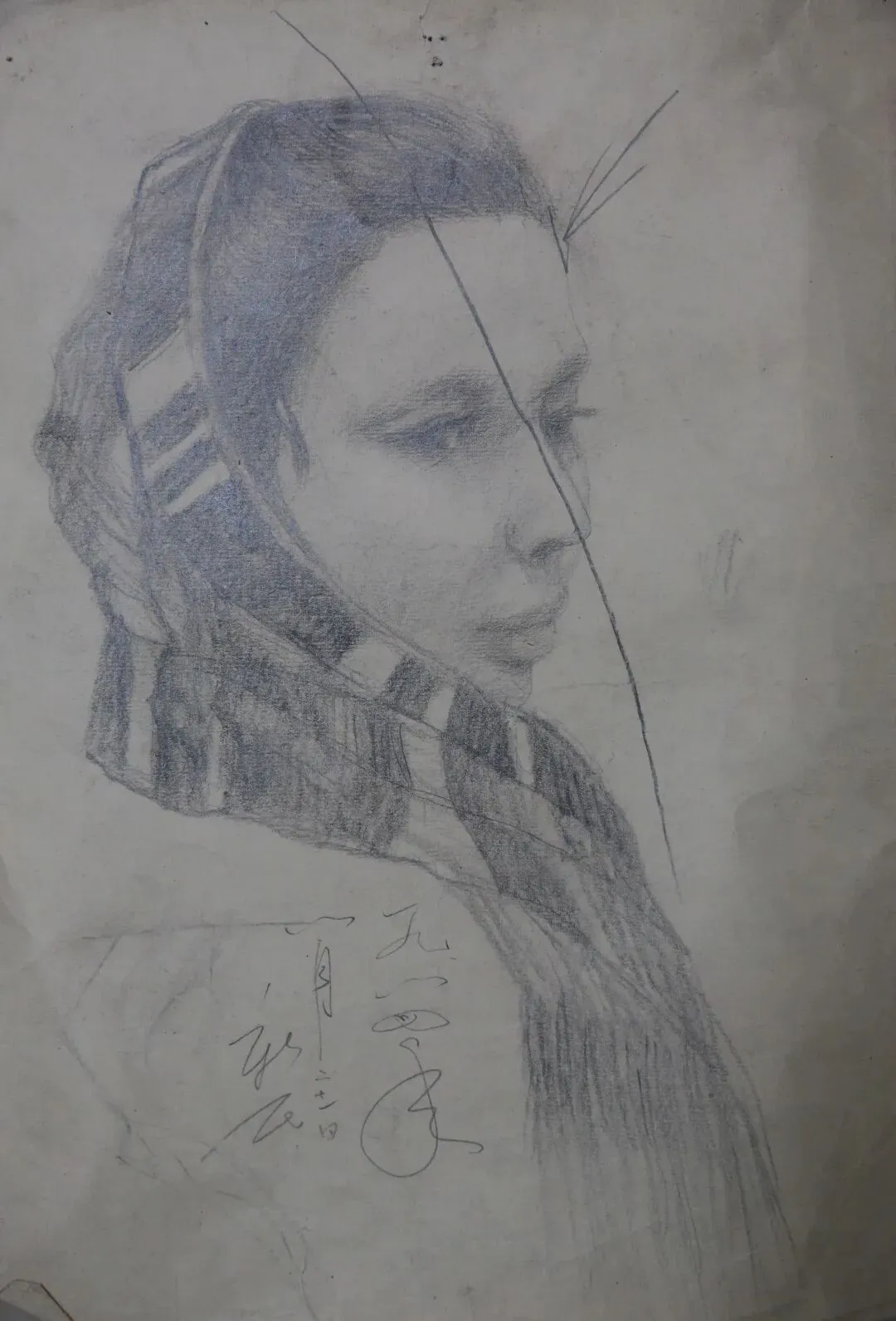 图为作者1983年10月31日夜晚在连队临摹的人像作品