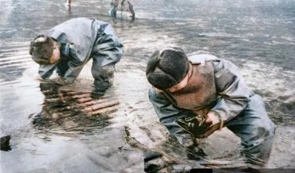 两位弯着腰的兵叫工程兵,手上那只钳子是排雷钳,冰水里摸索着线扣,手指冻得通红,动作却稳得要命,旁边的人不敢喘大气,就怕惊了暗处的家伙。