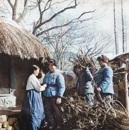 这捆粗枝叫山柴,战士在门口卸下,朝鲜大娘把围裙一攥,就往他手里塞热水壶,院里风刮得紧,屋檐草挂着霜珠,几句话不多讲,彼此都明白,这叫相帮。