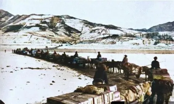 这串黑影叫运输号子,马拉着雪橇,箱子一格一格捆得齐整,河面结着硬冰,车辙拖出长长的白线,赶车人把棉帽压低,手里鞭子不响,嘴上哈的气结成霜花。