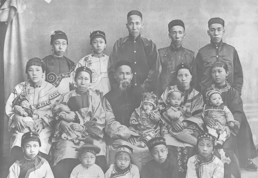 晚清老照片:富贵人家的妻子并不漂亮,一个家庭20口人拍全家福。