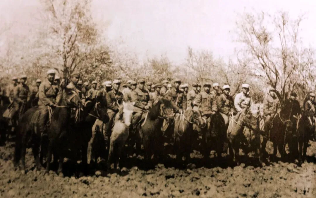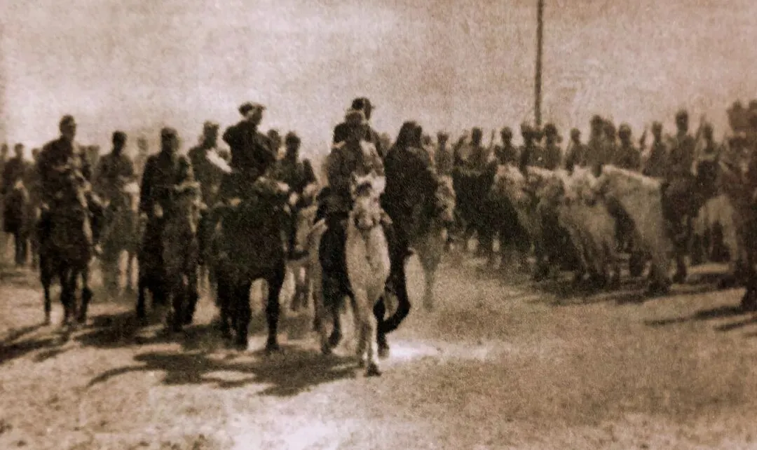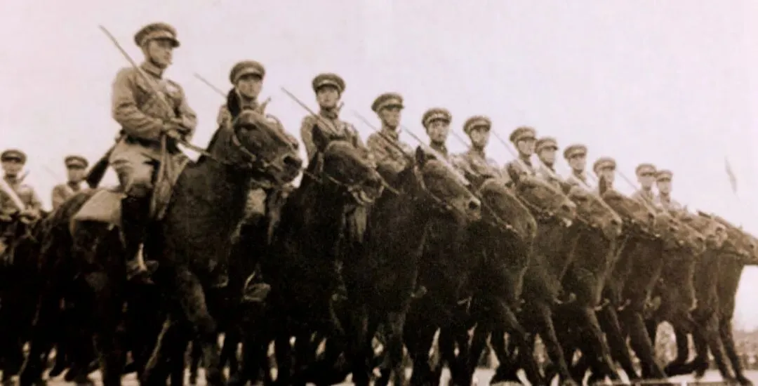 1947年5月2日乌兰夫检阅内蒙古骑兵部队。