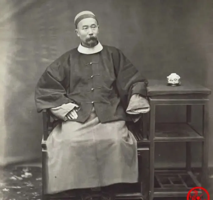 这位穿着对襟长袍的人端坐在圈椅上\u2009,\u2002桌边摆着一只白瓷小摆件\u2009,\u2002桌面起了点漆光,衣袖宽到能藏半只手\u2009,\u2002扣子朴素无纹,神气里带着一股持重,奶奶常念叨\u2009,\u2002“早年当官要先会坐”,坐得稳\u2009,\u2002话才稳,放到现在\u2009,\u2002不用袍子不用帽顶\u2009,\u2002可谁做事不求个稳字呢。
