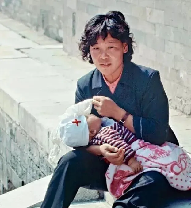 照片里这位年轻妈妈怀里抱着孩子,头上戴着小红十字的纱帽,手里给娃遮风,旁边的石阶凉凉的,她肩膀上那件藏青套装洗得发白,母亲这个词不用说就懂,奶奶看见这张会叹一声,那时候孩子闹就抱着到河沿坐会儿,风一过,睡得香极了。