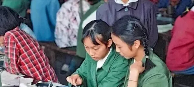 长桌边坐着两排女工,绿布工作服袖口挽起,手里一针一线在缝兜口,灯光打下来,线头在空中抖一抖就找着孔,旁边的小姑娘凑过去学,师傅头也不抬就说别心急,先把边压平,动作像水流一样顺,以前的衣裳能穿好多年,补丁补得规整,出门也不寒碜。