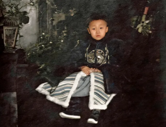 这小人儿的身份不必细说,图中这件呢料长袍厚实,胸口的纹章绣得细,边上一圈毛边压住走线,脚尖露出一抹白边,神情里有种早熟的拘谨,像被告知该怎么坐怎么看,屋里摆饰不算多,却一眼沉下去,墙角的绿植点着暗色背景,爸爸看了这张说,孩子嘛,生来就该跑跑跳跳,坐出这份端正,多半是规矩压着,话虽这么说,老照片里留着的却是时代的影子,以前人把出身和礼法放在前头,现在我们更看孩子的心情和兴趣,换个角度想,也算走到了另一个讲法上。