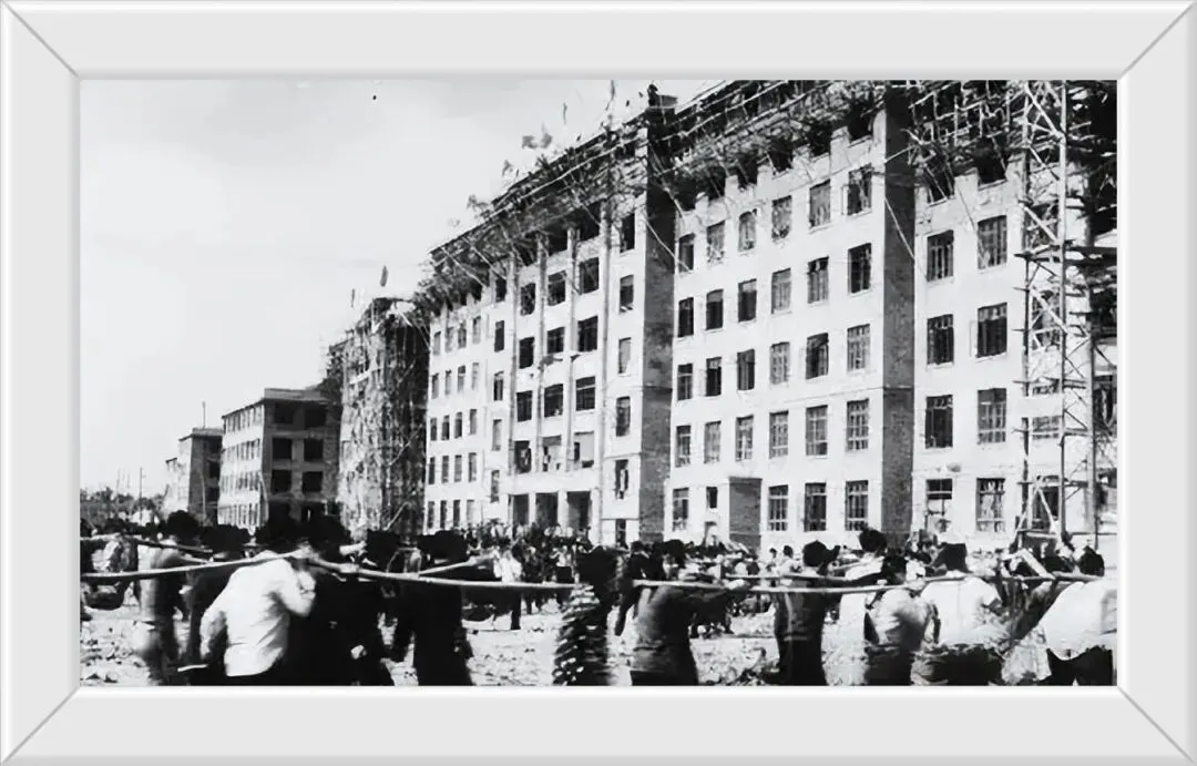 1945年刚建的合肥工业大学,才刚刚起步,楼房盖的高高的,那时候那有什么施工队,都是大家伙出工。