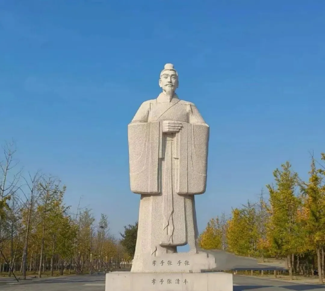 图中这尊石像叫张清丰像,白石立在路口,衣袖宽宽,双手于胸前合着,底座上刻着字,秋天一来两侧银杏金黄一片,爷爷说走这条路他总要抬头看一眼,觉得这位老先生站在这儿守着咱清丰人的根脉,以前路窄树小,骑车呼啦一下就过去,现在路面平整了,慢慢晃都行,风一吹衣角哗啦啦响。