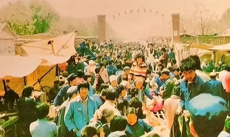 这个拥挤的场景是集贸市场,人挤人,布篷一顶挨一顶,吆喝声此起彼伏,小时候我被爸爸一把拎着胳膊往里钻,左手抓鸡蛋右手摸布匹,口袋里揣着钢蹦叮当响,卖饼的铛子一翻,香味直冲鼻子,放学晚了就顺着人流往门口挤,跟着那句长调的叫卖就能找到家人,那时候啥都紧,买到一件合心意的东西,乐得能回味好几天。