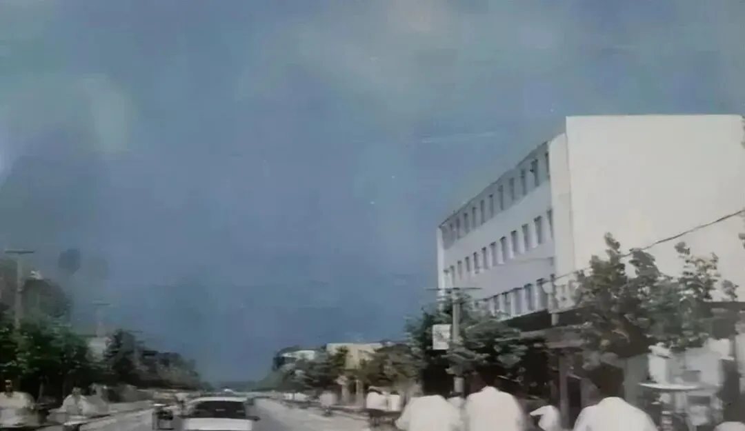 图里的这条路是南大街,天蓝得干净,路边树影稀疏,三层小楼的窗子一排排整齐,白衬衫骑车的人从镜头前蹬过去,链条“哗啦”一串响,街口小卖部挂着玻璃罐子,里面装着话梅和跳跳糖,那时候太阳落下得慢,店家掀起门帘往外看一眼,跟熟人点个头就算打过招呼。