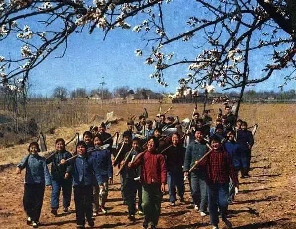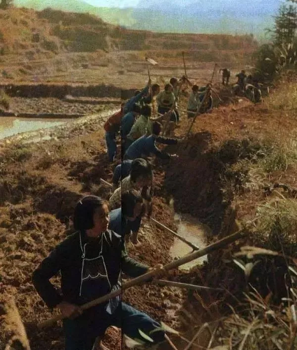 正在修整排洪沟的女知青们。