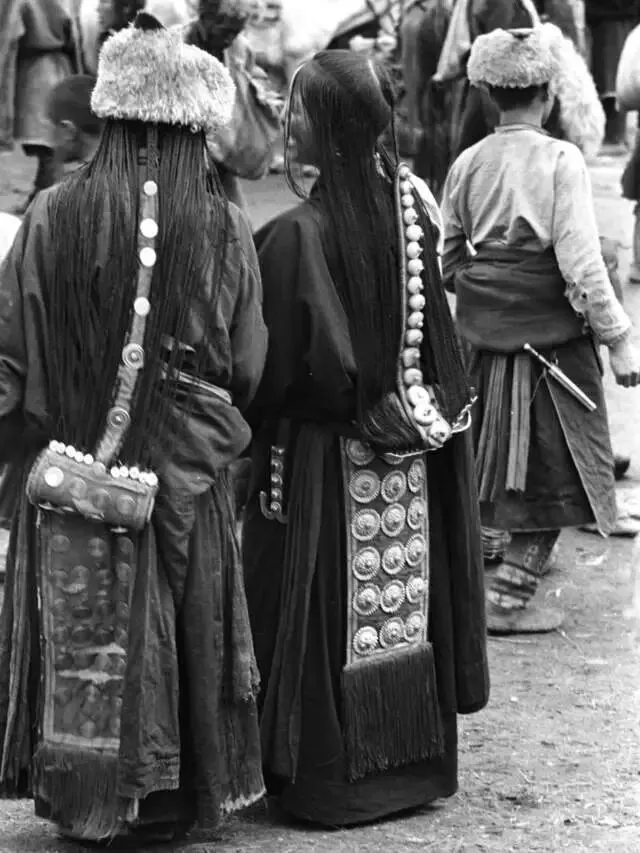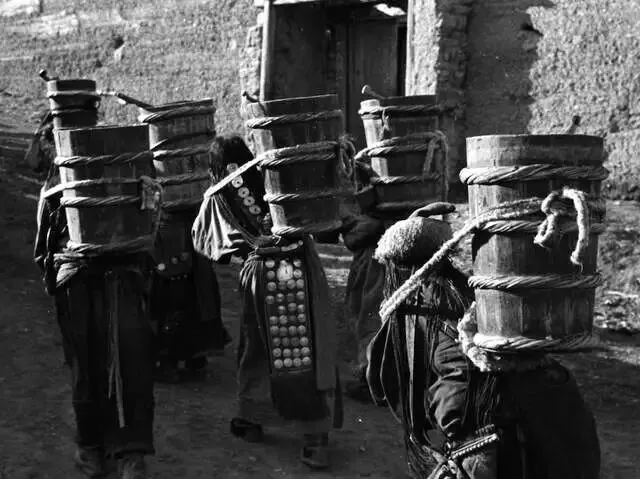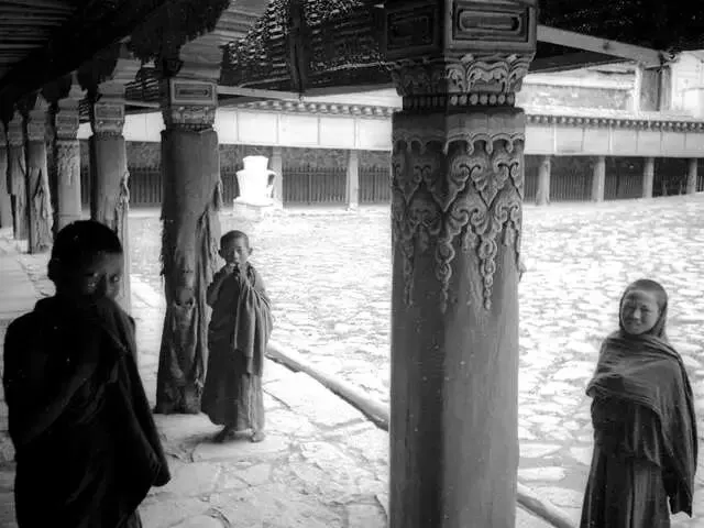 镜头也记录下了当时的人间烟火:背着木桶的信众,身着僧袍的小喇嘛,梳着传统发辫、佩戴饰品的当地人,还有寺院广场上聚集的僧众,他们的身影,让这座千年古寺多了几分鲜活的温度。