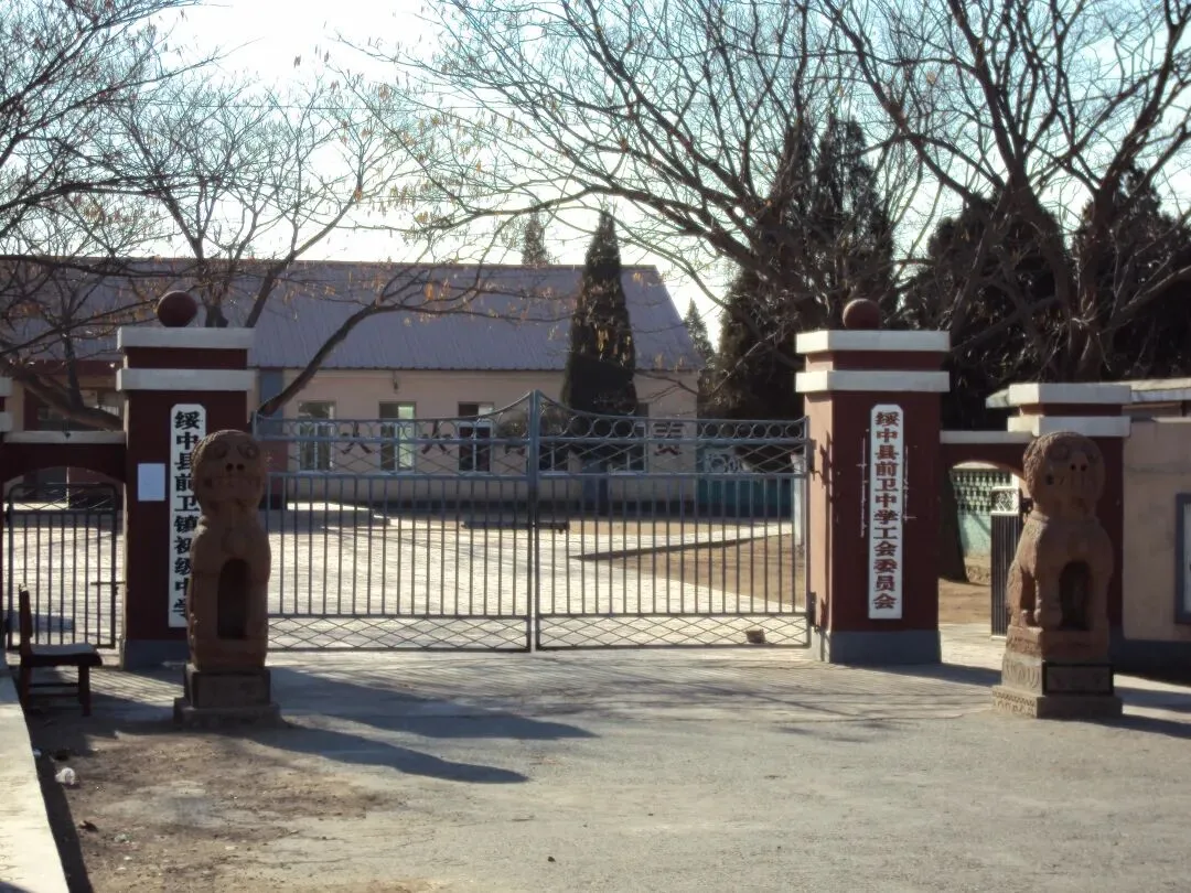 2010年那会儿,我刚买了相机不久,总是爱随身带着,走到哪儿拍到哪儿,但凡遇见什么觉得有点意思的,就忍不住按下快门。 那年12月10日,我和单位的同事去前卫城办事,路过前卫中学时,眼前忽然一亮。校园收拾得干干净净,几排高大的瓦房教室,外墙刷着标语——“****,人人有责!”教室前头种着一排排柏树,整整齐齐,透着一种老派学校的庄重劲儿。校门是钢管焊接的那种,正中一个大门口,两侧还各开了一个小角门。门旁挂着两块牌子,一块写着“绥中县前卫镇初级中学”,另一块是“绥中县前卫中学工会委员会”。