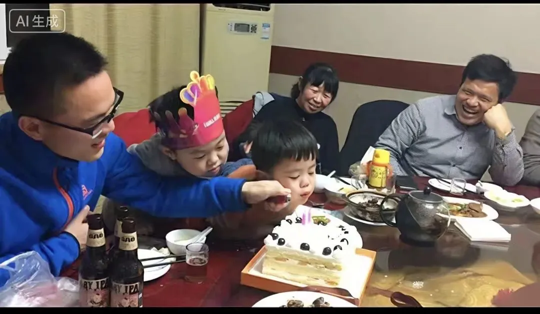 看着这张照片,我仿佛又回到了那个被蛋糕香和笑声包围的夜晚。那时的我,还是个被爸爸喂蛋糕的小不点,戴着生日帽,眼睛只盯着眼前的奶油和蜡烛。