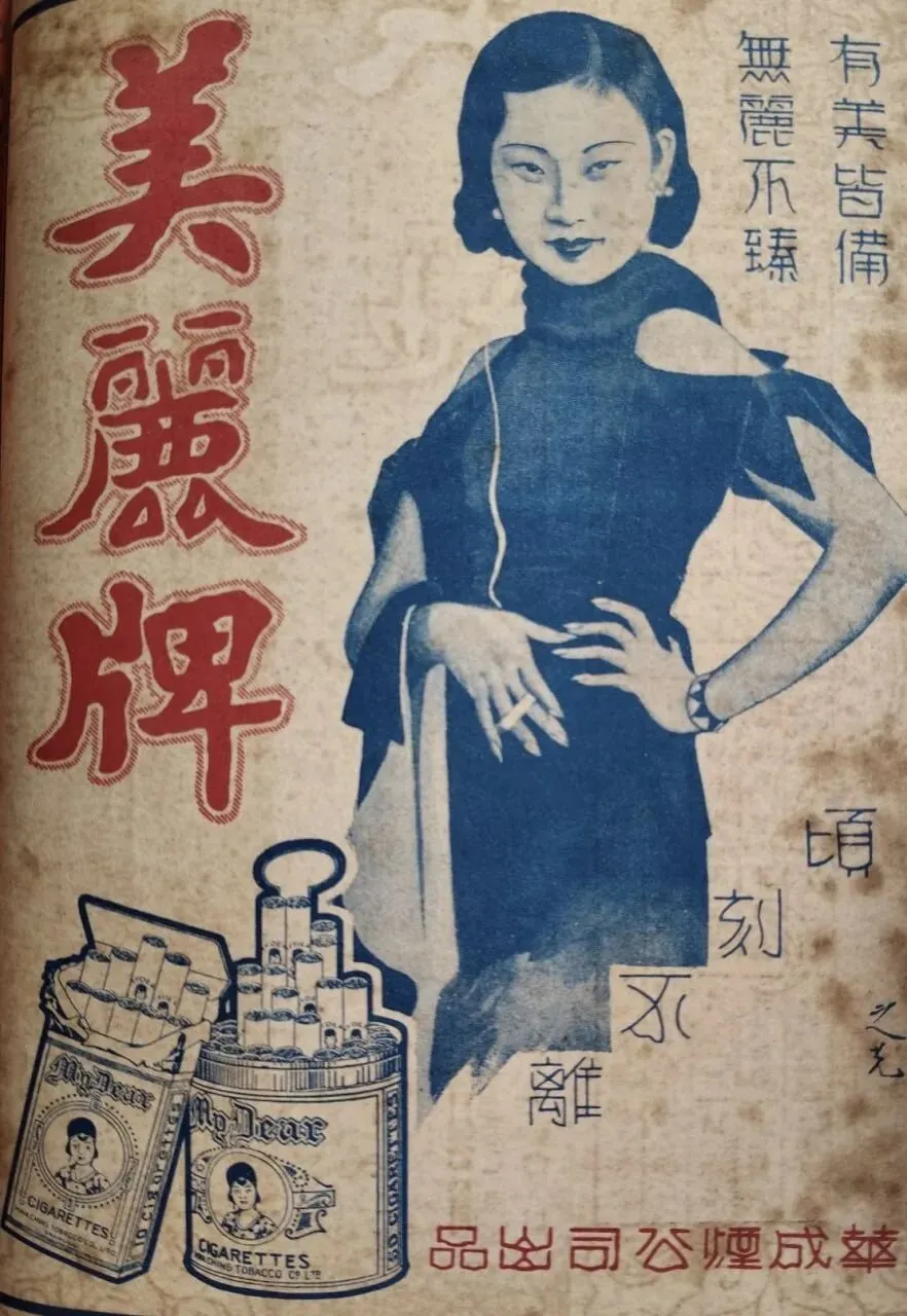 1930年代上海《美丽的》香烟的诱人广告这则广告展示了上海都市的时尚与现代感,宣传《美丽的》香烟的高雅与魅力,体现当时城市文化与消费潮流。