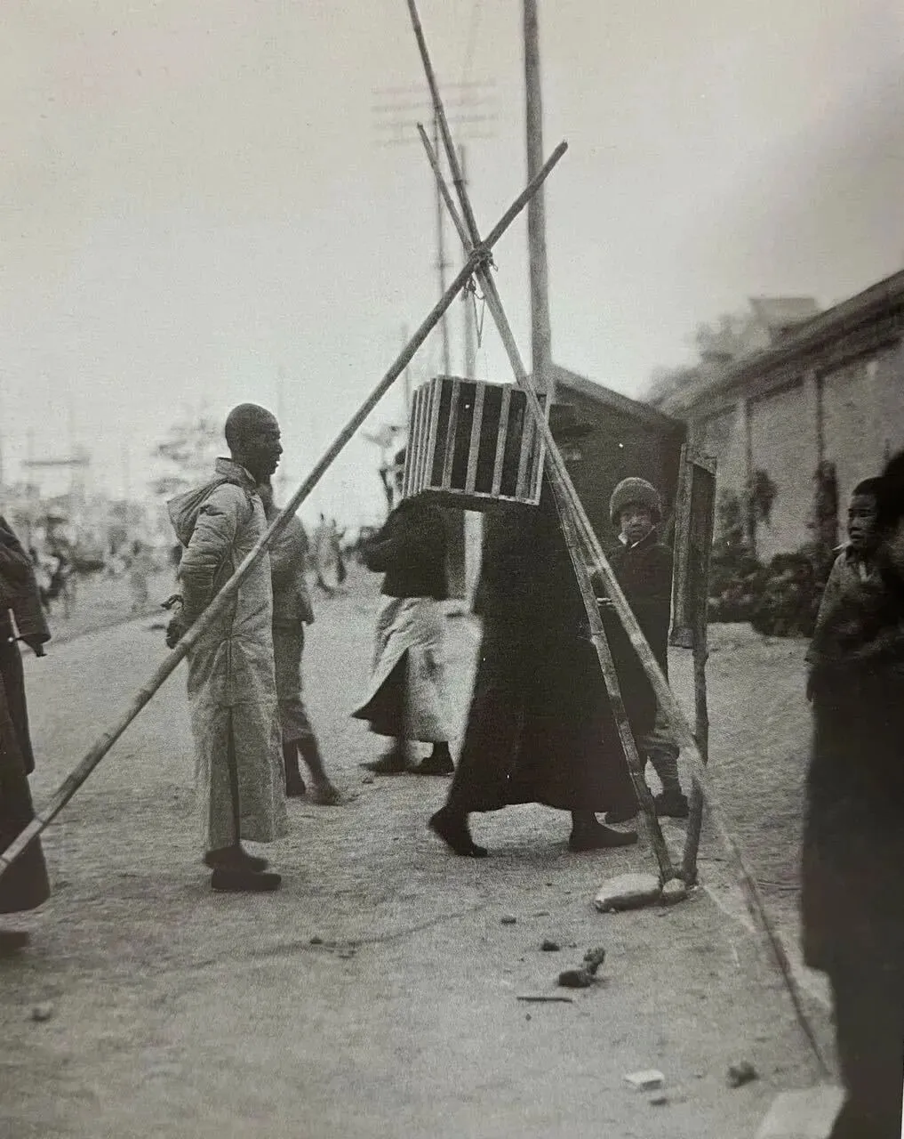 1924年北京,被砍头的死刑犯,头颅装在笼子里当街示众。