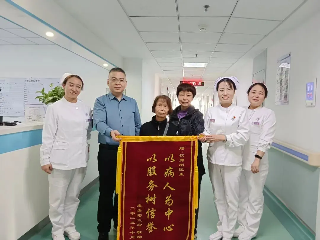 2023年10月,82岁的母亲拉着我,亲手将一面锦旗送到祝医生手中。“以病人为中心,以服务树信誉”——十个字,写了我们一家人一年的感激。