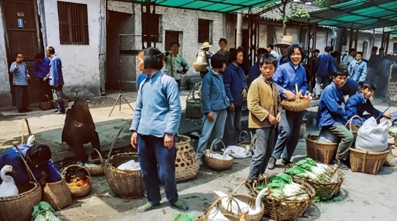 这个大集,遮阳布撑在头顶,吆喝声是散着走的,左边有人拎着鸭翅膀给你看,右边有人捧着青菜叫新鲜,竹箩筐里衬着湿草纸,防止水气散得太快,钱票放在胸前兜里,摸出来叠整齐,卖完一趟回手把竹篾带收紧,摊面就干净了,后来市场有了标准摊位,这样的露天味道散得也快。