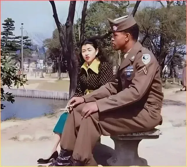 你瞧这张照片,三个.年轻人坐在简陋的.木板房前,两个穿着时髦的韩国姑娘,中间夹着一位美国大.兵。那个年代的木板房.,用绳子绑着,透着.战后的破败和艰辛.。可姑娘们的发型和衣着打扮,却透着.一股.精心收拾过的味道.。中间那位大兵的表情略显疲惫.,但三人之间的亲密姿态,.让人不禁猜想他们.之间的故事。这.样的场景在当时可不少见,战争留下的不.只.是废墟,还有复杂的人际关系。