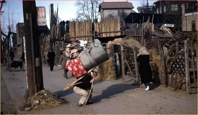 这张照.片最能体现那个.年代.韩国底层百姓的真实生活。破旧的街道.,简陋的房屋,一.个男人背着沉重的.货物艰难前行。战后的.韩国百废待兴,普通人为.了生计不得不拼命劳作.。远处还能看到其.他行人,整个画.面.透着浓浓的年代感和生活的不易。这样的场景和前面那些打扮光鲜的照片形成了强烈.对.比,让人.看到了那个时代的两面性。
