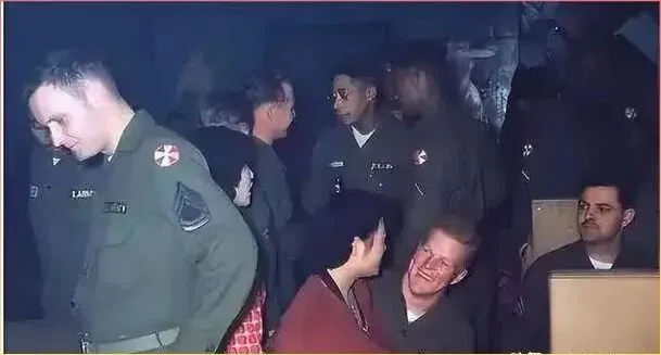 这张照片拍.摄于某个军事.场所,几位美国.军官聚在一起,其中还有两位韩国女性,从.她们的笑.容.可以看出当时气氛还算轻松。那个年代,能够出入美军驻地的当.地女性,.身份往往比较.特殊。有的是翻译,有的是工.作人员,.也有的是.军属家眷。这些女性.在东.西方文化交融的大背景下,扮演着特殊的.角色。