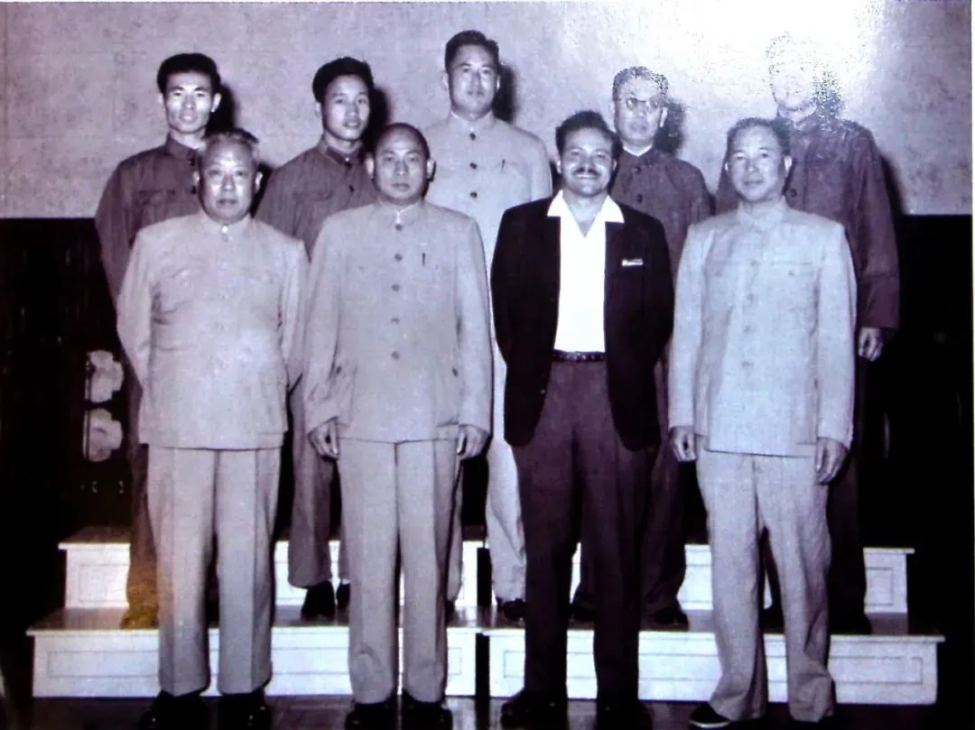 1969年9月,照片中陈伯达等非军人戴着帽子,衣服挺随便的,他和林彪手中的毛主席语录没有托举起来。可以明显看出周总理和康生后边是杨得,陈伯达后边是梁兴初,1967年1月22日出席军委碰头会议的人员合影。康生聂荣臻后边的应该是谢富治,好像许世友站在最后一排吧?杨成武、肖华、陈再道、杨得志、李作鹏、黄永胜都是挺明显好认的,张震和李天佑应该站在一起呢。江青和李富春站在第一排的左1左2,叶群是不是站在他们两人后边,我也就有这个水平了,认不全。1964年6月罗瑞卿总长、李天佑副总长接见越南人民军空军代表团。有曹里怀中将、肖向荣中将,当年反美援越挺低调的,越南防空军政委邓性等都是着便衣的。1965年委瑞瑞拉民族解放阵线司令巴布洽访华。李天佑、肖向荣(国防部办公厅主任)、潘振武(国防部办公厅副主任兼外事局局长)接见巴布洽。1964年贺龙元帅接见部队会议代表。有:李聚奎上将、彭绍辉上将、罗瑞卿大将、贺龙元帅、张宗逊上将、杨成武上将、李天佑上将、刘志坚中将、王新亭上将、肖向荣中将。1964年2月三位上将副总参谋长率总参机关人员到空军机关参观学习。照片中四位上将分别是:刘亚楼、李天佑、王新亭、彭绍辉,李天佑右边的是中将孙毅。李天佑左后为刘少文中将(戴眼镜的领导)。四位上将离世的有些早:刘亚楼上将1965年5月7日,55岁、李天佑上将1970年9月27日,56岁、彭绍辉上将1978年4月25日,72岁、王新亭上将1984年12月11日,76岁。1963年底,叶剑英元帅视察总参三部。右起:杨成武、叶剑英、李天佑、彭富九、冯维精、胡备文、钱江、姜钟、王永浚、陈福初1960年董必武、林彪、陶铸、黄永胜、李天佑接见广州军区政工会议代表。左起:赖春凤(我注:开国将军唯一的井冈山籍的)、刘兴元、李天佑、黄永胜、林彪、董必武、陶铸、梁兴初、温玉成、郭成柱、谢镗忠1959年7月,赴原苏联远东伯力地区观摩苏军实兵演习的中国代表团和苏军有关人员、越南人民军代表团、朝鲜人民军代表团合影。左一为王尚荣中将、左二为向仲华中将、左三为曹里怀中将、左五为杨成武上将、中排:左四为解方少将、左七为张才千中将、左八为李作鹏中将、左十为张池明中将,后排:左七为宋承志少将、左十为贺晋年少将1953年10月,朱德总司令在北京动物园畅观楼与参加国庆观礼的军队代表合影。前排左起:二为杨得志、三为陈赓、四为朵噶·彭措饶杰(西藏军区第二副司令)、五为朱德、六为甘泗淇、七为肖劲光、八为徐立清、九为李志民、十为陈锡联;二排左起:一为杨立三、二为黄永胜、五为李天焕、六为王秉璋、八为肖克、九为范明(西藏军区副政委)、十为杜义德;三排左起:三为李天佑;四排左起:一为朱早观、三为牙含章(西藏工委)、四为萧向荣、六为平措旺杰(藏语翻译)。这位挂“白满”的戴眼镜的人,看出来是谁了吗?我下边的介绍内容能够让您知道是谁了。“当年部队进攻洛阳时俘获了汤恩伯的京戏班子。攻克洛阳后,指挥员喜悦地穿戴上戏装留影”。知道是那位戏台外的大将军了吧。一排有孔从洲、李达、张子意、贺龙、邓小平、陈赓、陈鹤桥、韦杰 陈赓将军雅教 悲鸿敬赠 贺其战功彪炳百世也(图章)长按以下二维码并识别,进入《北京瞧办主任》公众号,可以放心审阅上千篇文章内容