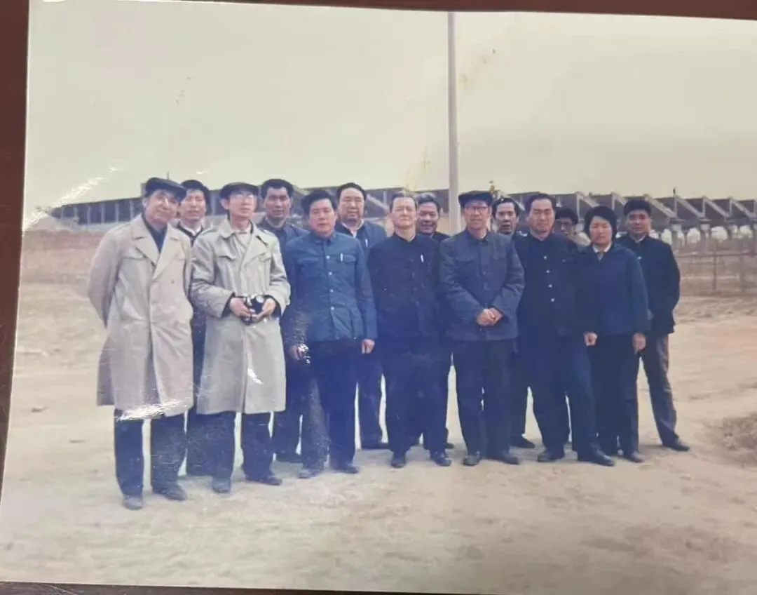 下图,这是一张由河间市棉纺厂原副厂长李宝宽提供的老照片。照片上的人们大部分身穿蓝色、黑色中山装式的上衣,有一个还戴着帽子,有几个人上衣口袋里还别着钢笔,一看就是上世纪八、九十年代机关干部、教师的普通但很时尚的装束。在老照片的左边,有两位身穿白色风衣的人显得颇有风度,有一位还戴着眼镜,手里拿着照相机,哎,现在很少见到有人穿风衣了!但是,如果不加说明,你可能不知道这一群人在干什么!李宝宽说,这张照片拍摄于1987年初冬,照片中有河北省纺织工业总公司(原河北省纺织工业厅改名而来)有关负责人、沧州地区轻纺局局长蒋梅英、副局长郭义生、河间县主管工业的副县长左增旺、县政府办公室副主任兼筹建小组组长的刘开成、县计划委员会主任赵树林,以及棉纺厂的两位正副负责人,其余几位不知姓名。