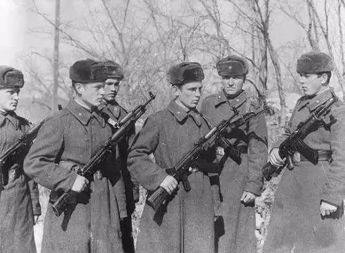 ▲巴班斯基下士(左二)珍宝岛战斗后获苏维埃英雄称号