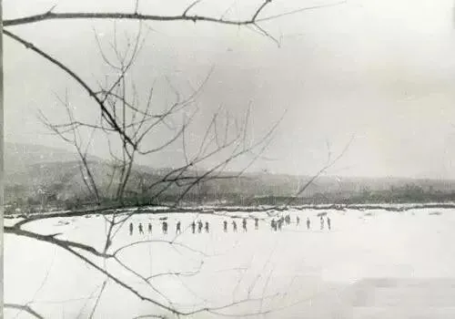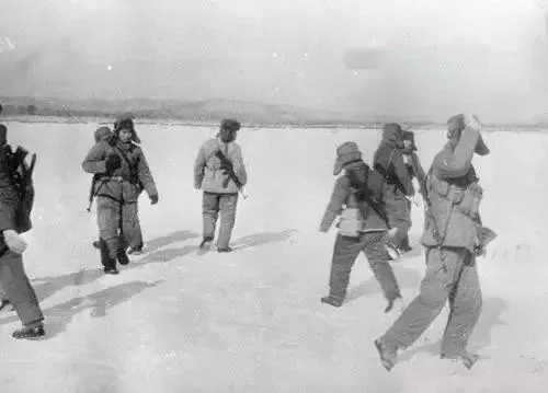 ▲一队中国军人在珍宝岛的冰面上(1969年3月2日)