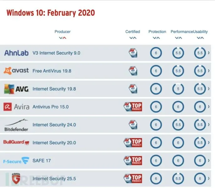 AV-TEST Windows杀软测评排行