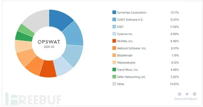 2020年3月 OPASWAT的Windows杀软市场份额排行榜