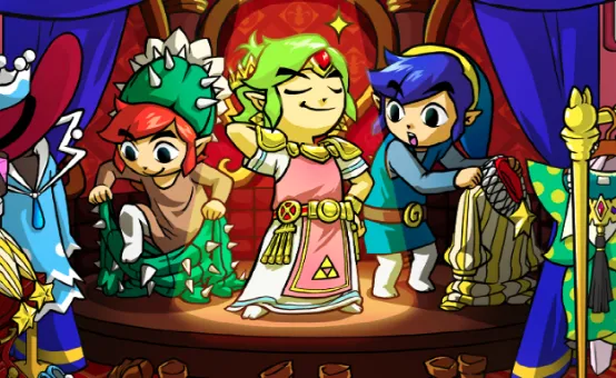 本作是一款以多人合作为基础设计的《塞尔达》,游戏活用了3DS的“裸眼3D”机能,将地图结构分成了3层。游戏所有的关卡,都需要三位林克互相配合来完成。