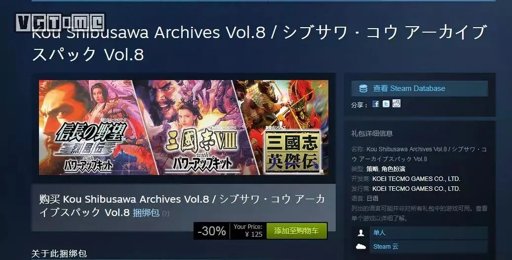 此次登陆作品中《三国志英杰传》国区售价42元,《三国志8》《信长之野望烈风传》为68元。合集包则拥有7折捆绑优惠,125元。