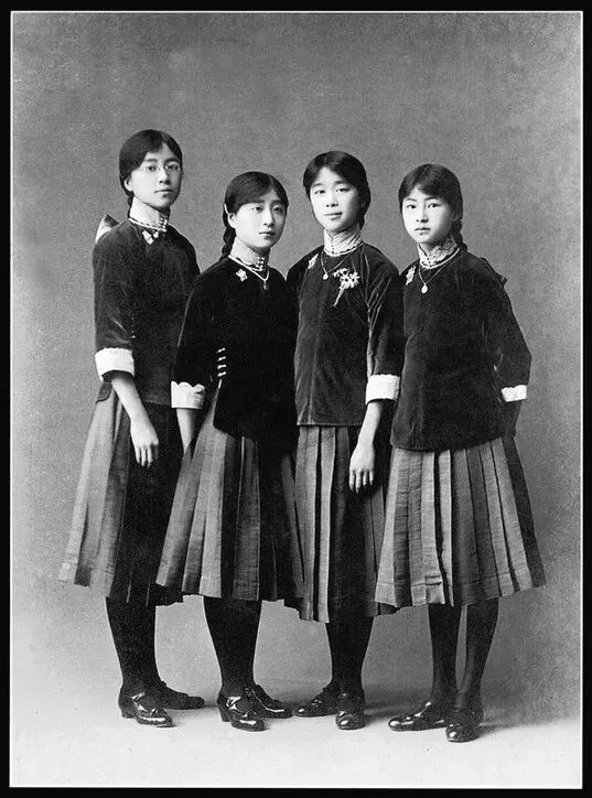 她们身上穿的是北京培华女子中学的校服。摄于1916年。(原载《老照片》第8辑)