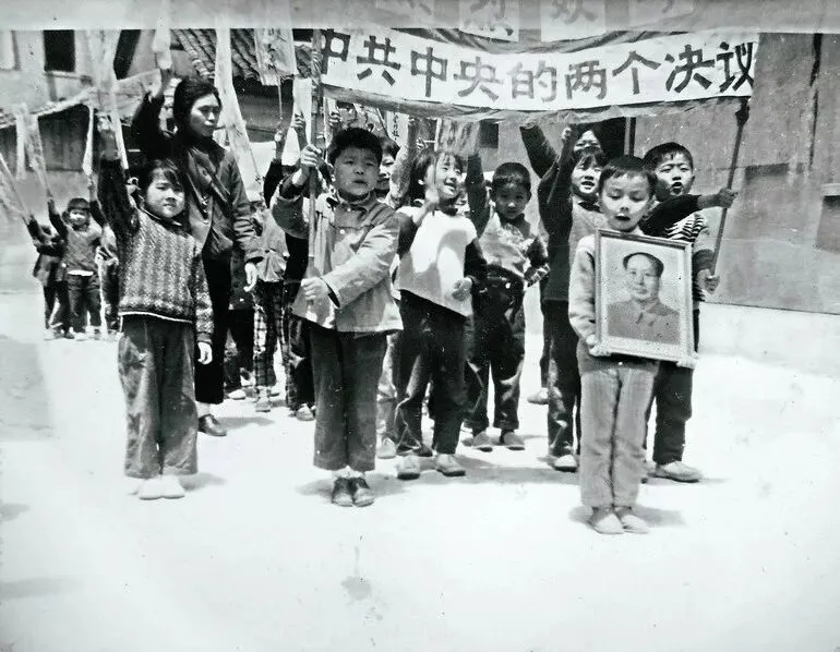 1976年“四五事件”后,中共中央做出了两个决议。决议通过后,组织民众上街游行、庆祝,连小学生也不例外。(原载《老照片》第96辑)