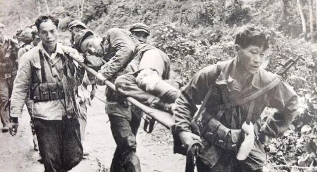 这个队伍叫当地民兵担架队,肩窝垫着布,木杆压得泛白,前头带路的人把枪口朝下,路窄就侧着身子挤过去,后面有人喊慢点别晃,他也不回头,脚没停,山路一折一折地往回走。