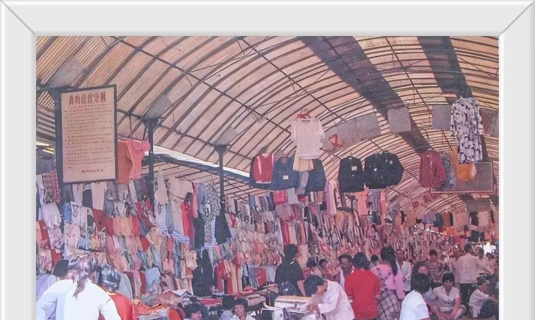 这一长拱棚是龙凤商场一带的服装市,衣服从梁上一直吊到摊面,码得密密匝匝,手伸进去摸棉摸呢,讨价还价不红脸,摊主把卷尺一甩“胸围这么多,腰围差不多”,现在试衣镜有灯,尺码直接扫二维码,热闹少了点,方便多了点。