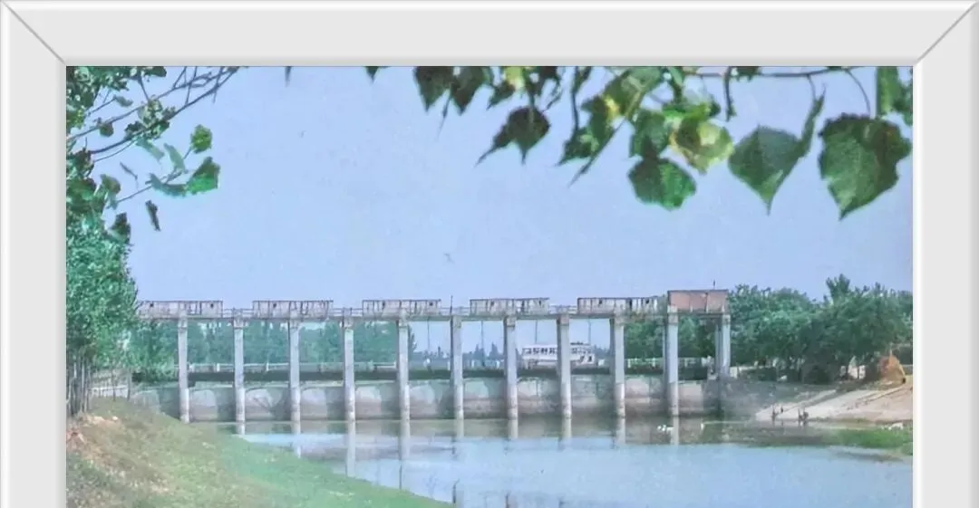 这排水泥立柱是龙路口水闸,闸板起落有声,河面被切成一格一格,岸边孩子脱鞋下水摸鱼,守闸师傅眯着眼看水位,“别贪多,放匀点,地里才吃得上”,现在泵站自动化,手机上也能看曲线,那时一把扳手能管住一季庄稼。