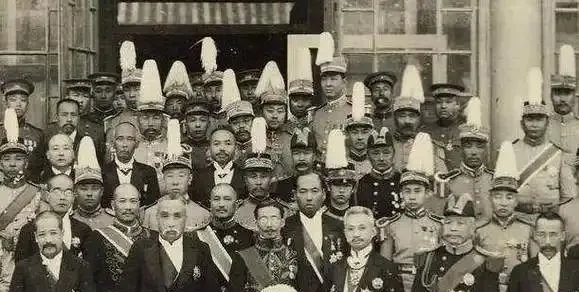 这张人挤人的合影叫军礼相,胸前都是勋表和绶带,帽檐上插白羽,站在前排的脸往上一板,谁也不肯让半步,场面越拥挤越容易看出彼此的分寸,肩章再宽,脚下的根要不稳,照相时就多挪半寸。