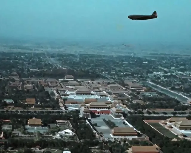 这张远景图拉开了那个年代的北京画卷,天上还能看见飞机掠过,底下故宫安安稳稳地躺着,宫墙外头一片绿,楼不高,也没几辆车,哪像现在高楼林立,树只剩一排排装点,咱小时候最怕的就是电视剧里把胡同拍得跟CBD一样,这地方真要爬楼能看到,还是得有老外的手艺。