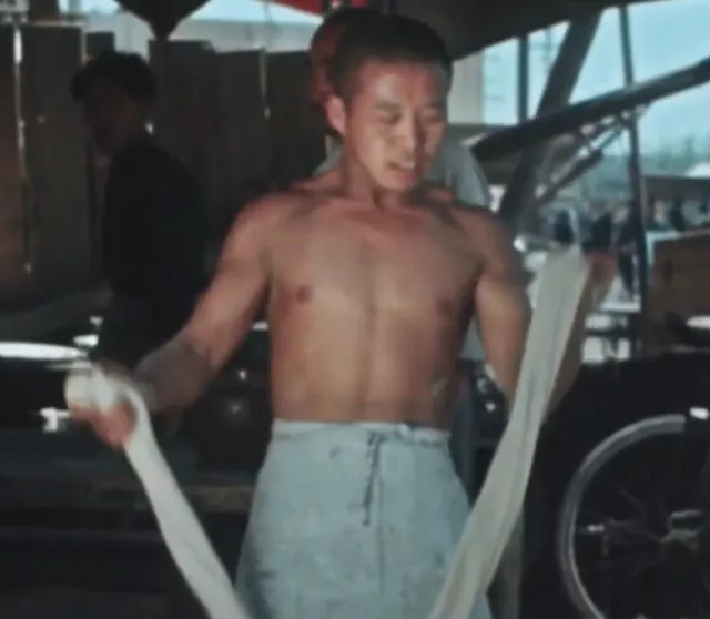 这光膀子抻面的师傅,胳膊上的劲都拽的小麦面条弹性十足,一边抻还一边喊,旁边人跟着瞧热闹,摊位后面挂着案板和旧台秤,别看技术不复杂,那根面能拉得匀细筋道,全凭手感和经验,师傅下了工,一身汗都是麦香气。