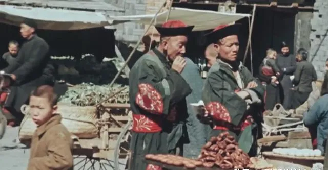 照片里穿着大红花袖口的两位是满族同行,那时候喜事白事都要找他们,斜挎着旧葫芦,手插在袖口,走街串巷,红事穿红,白事穿蓝,身份一目了然,现在哪还有人按颜色分工种,反正那时候规矩多,规矩一条一条落在日常细节里。